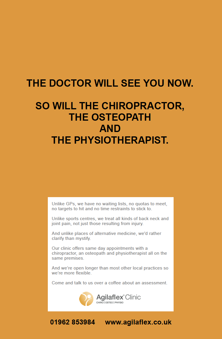 Campaign for an independent chiropractor running in local gyms and local press.